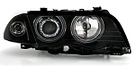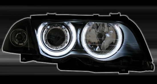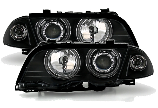 Mustapohjaiset , CCFL Angel eyes rinkuloilla varustetut ajovalot E46 Sedan ja Touring prefacelift. Käy vuosimalliin 9/01 asti