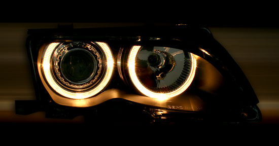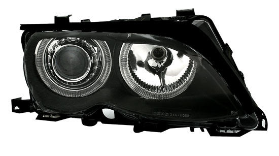Mustapohjaiset Angel eyes rinkuloilla varustetut ajovalot E46 Sedan ja Touring. Käy vuosimalleihin 10/01-3/05